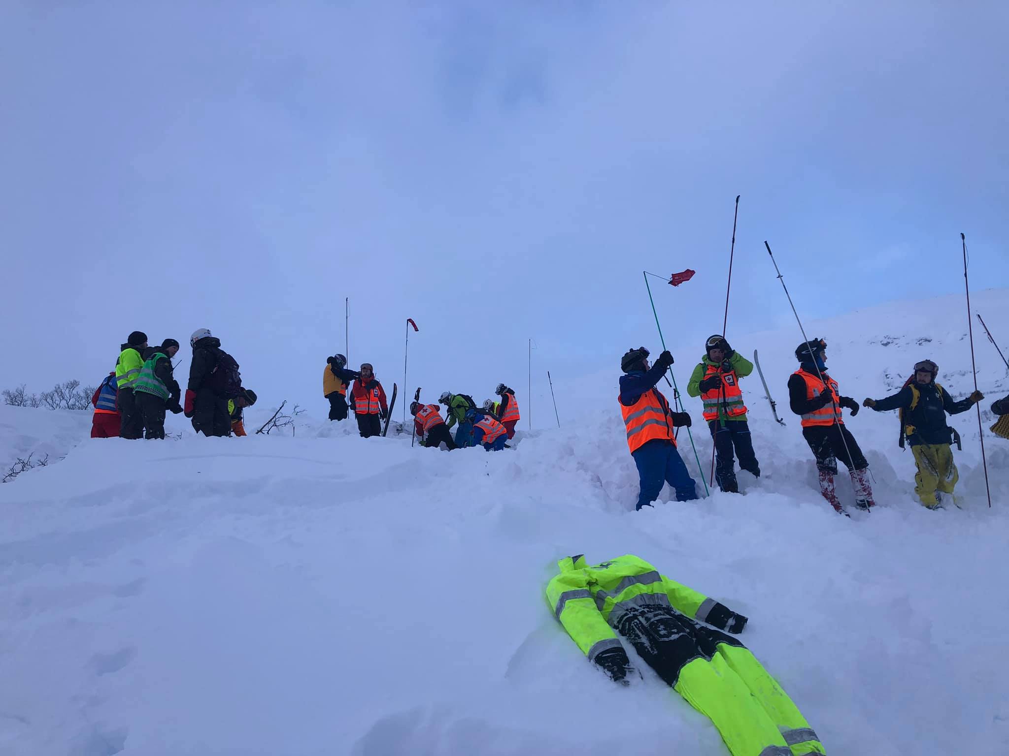 Skredøving i Hodlekve i dag. Deltakarar frå Sogndal, Leikanger, Hafslo, Luster Hjelpekorps, Luster Sogn skredgruppe, Norske redningshundar, Politi, Luftambulanse og CHC redningshelikopter.