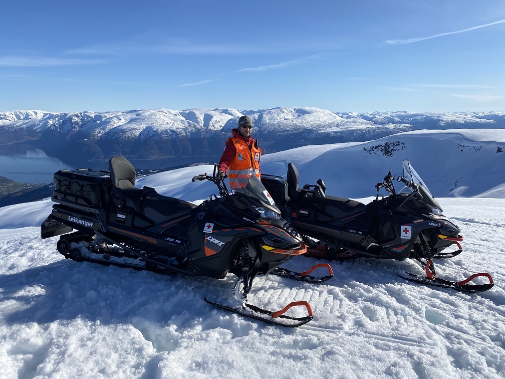 - Vi fekk etter søknader tildelt kr. 180 000 frå Gjensidigestiftelsen, og kr. 220 000 frå Røde Kors nasjonalt. Dette gjorde det mogeleg for oss å investere i to nye snøscooterar, som kvar kostar om lag kr. 200 000, seier leiar i Røde Kors Leikanger Hjelpekorps, John Petter Svedal. Han sender samstundes ein stor takk til begge bidragsytarar. Støysvak, men mykje krefter Snøscooterane er av merket Lynx Commander, begge med turbo og 150 hestekrefter. Dette byr på mykje krefter. - Sidan det her er snakk om 4-takt motor, så støyar dei langt mindre enn dei tradisjonelle 2-taktsmotorane. I tillegg brukar dei mindre drivstoff. Desse er altså meir miljøvennlege enn dei vi har hatt før, seier leiaren. Tek seg godt fram i krevjande område - Dette er vel noko av det beste du får tak i under kategorien arbeidssnøscooter. Takka vere moderne oppbygning av snøscooter, grovt belte og mykje motorkraft, er vi betre rusta til å komme oss fram i krevjande område, seier leiaren. Han trur at kraftutbygginga som finn stad i Grindsdalen og Henjadalen vil gjere Leikanger til eit meir populært skiområde. - Når fleire folk trekker mot område som det før ikkje var så naturleg å ferdast i, krev det at vi har godt utstyr i korpset og at mannskapet vårt er kjent i området. Det er difor viktig å gjennomføre kjentmannsturar og øvingar i fleire område, og ikkje minst er det viktig å øve på å bli god på å køyre snøscooter. Sistnemnte må ikkje undervurderast, og han understrekar: - Køyring av snøscooter er ofte forbunde med risiko, men med rett bruk og mykje mengdetrening er det eit fantastisk verktøy for oss under redningsaksjonar. Vi kjem oss fort fram og pasienten slepp å vente så lenge i snøen. Kostbart utstyr Med to nye snøscooterar, bestemte korpset seg for å selje ein av dei to eldre snøscooterane som dei hadde. Salet av den eine snøscooteren gjorde det difor mogeleg å kjøpe ein ny redningspulk. - Det er dyrt å drive ei frivillig redningsteneste på godt vis. Berre redningspulken med slede kostar over kr. 50 000, så det seier seg sjølv at ein er heilt avhengig av økonomisk støtte frå ulike hald. Vi treng heile tida ei fornying av utstyret vårt for å kunne stille på aksjonar – både vinter og sommar. - Vi prøver no å skaffe oss midlar til å kjøpe ein hengar som kan frakte begge snøscooterane. Sjølv om det er mogeleg å ta seg fram til dei fleste områda med utgangspunkt frå garasjen på Kleppa, er det langt frå hensiktsmessig i mange tilfelle. Ein hengar vil difor vere eit særs godt supplement til beredskapen vår. Denne vil vi kunne nytte heile året, då vi også har ein ATV med belte som må transporterast til ulike område. Ynskjer fleire medlemmar Grunna situasjonen med korona, har aktivitetsnivået i korpset vore på eit mindre nivå denne vinteren. - Vi hadde store planar for ulike aktivitetar denne vinteren, så det har ikkje blitt øva så mykje som vi hadde ønska. Men det vil det bli høve til seinare. Samtidig understrekar han at dei likevel har vore i beredskap og at dei nye snøscooterane har blitt brukt. - Vi er i beredskap heile tida, og er klare til å rykkje ut dersom vi blir utkalla av enten AMK eller Politiet. Snøscooterane har også blitt testa i redningsaksjon, nokre få øvingar og til leigekøyring, før leiaren avsluttar: - Nye medlemmar er alltid velkomne, og dersom du ynskjer å vere frivillig eller er nysgjerrig på kva det inneberer å vere med oss, så ta kontakt.
